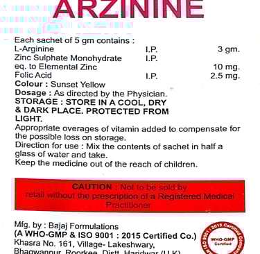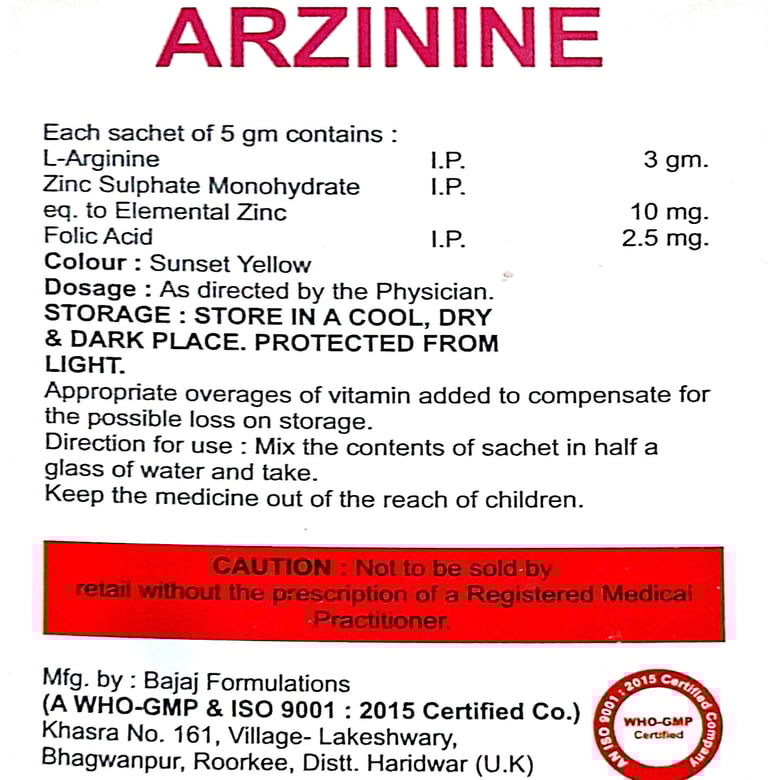 Active Ingredients: L-Arginine, Zinc, Folic Acid
