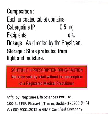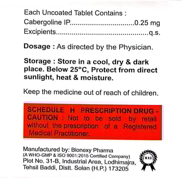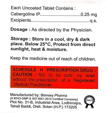Active Ingredient: Cabergoline 0.25/0.5 mg
