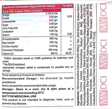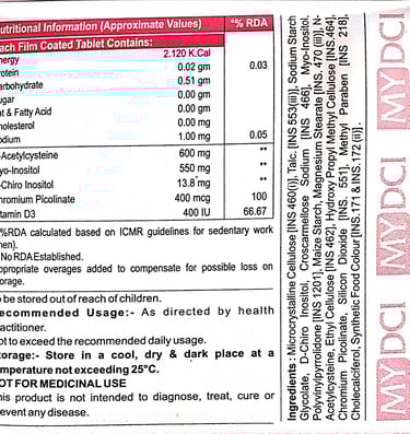 Active Ingredients: Myo-Inositol, D-Chiro-Inositol, N-Acetylcysteine, Chromium Picollinate, Vitamin D3