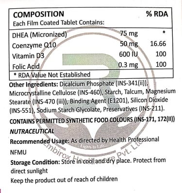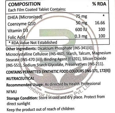 Active Ingredients: Micronized DHEA, CoQ10, Vitamin D3, Folic Acid